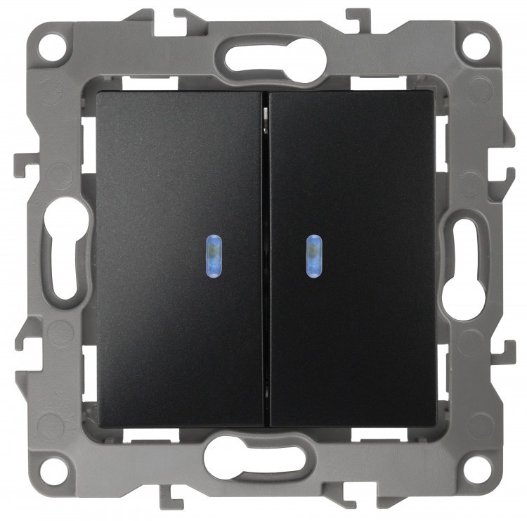 Выключатель 2кл. с инд. 10АХ-250В IP20 механизм 12 антрацит Эра 12-1105-05
