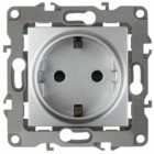 Розетка 1-м СП Эра -2102-03 16А IP20 16AX 250В 2P+E Schuko защ. шторки механизм алюм. Эра Б0014689
