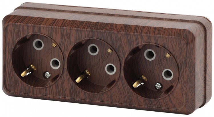 Розетка 3-м ОП Quteo 16А IP20 250В 3х2P+E с/з защ. шторки дерево Leg 782288