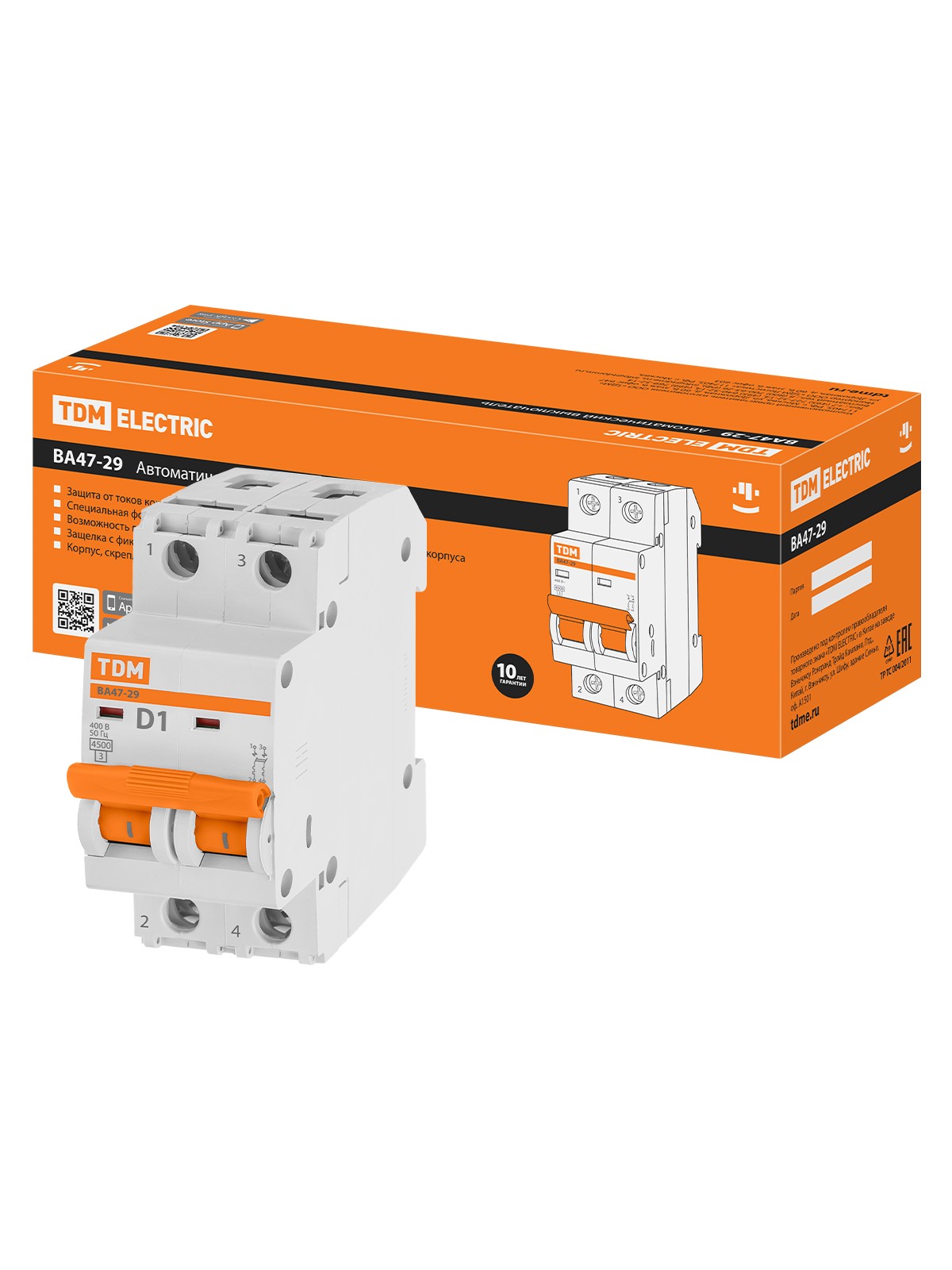 Авт. выкл.ВА47-29 2Р 10А 4,5кА х-ка В TDM