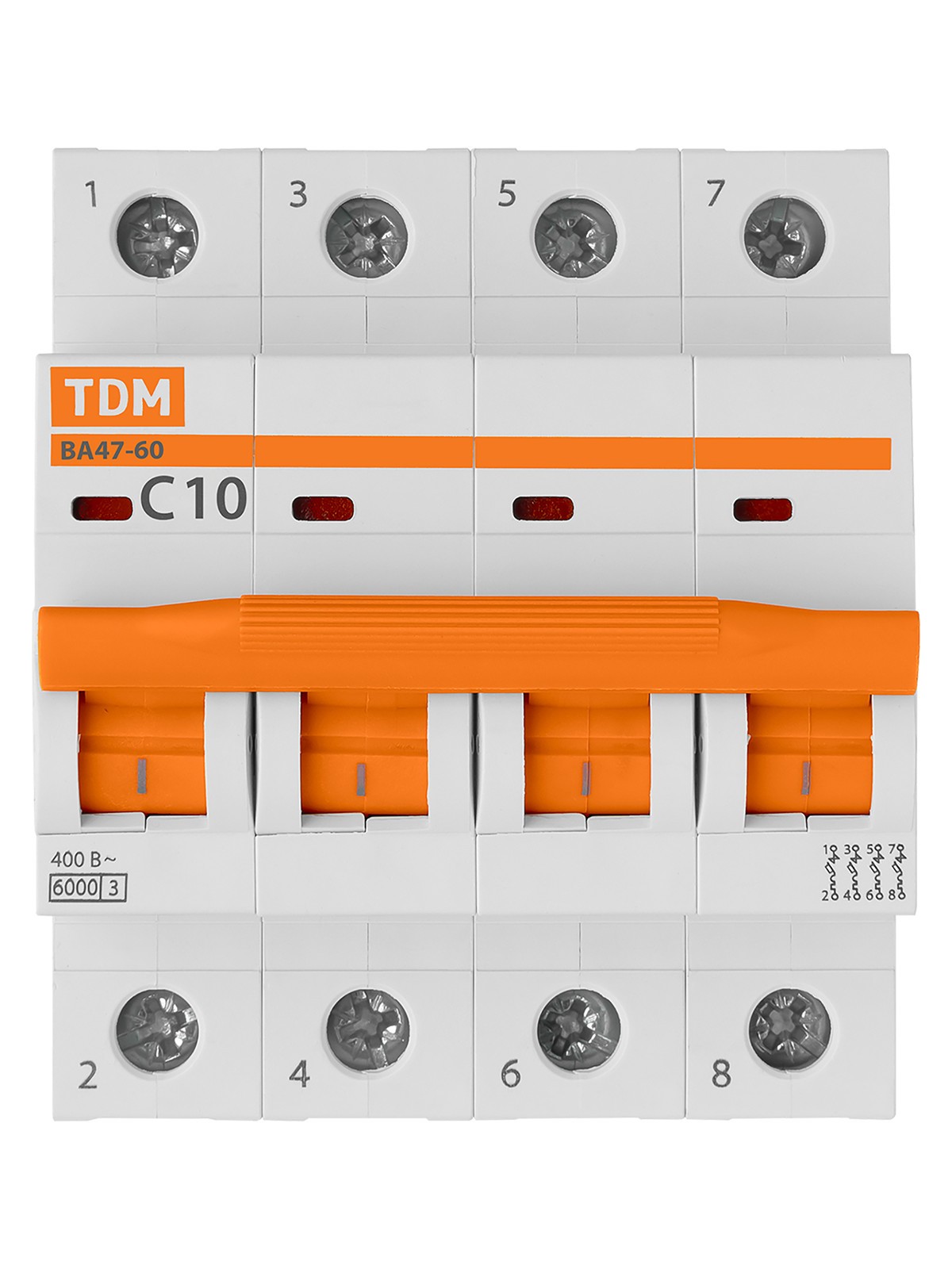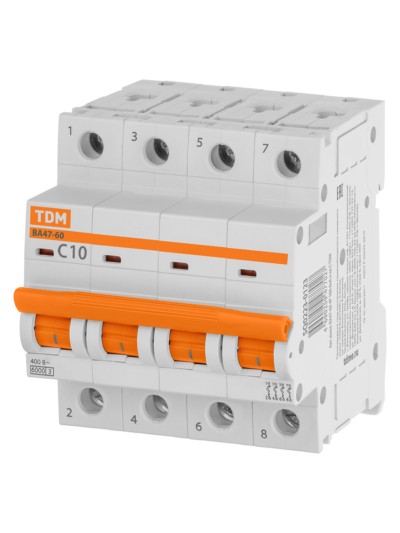 Авт. выкл. ВА47-60 4Р 10А 6кА х-ка С TDM