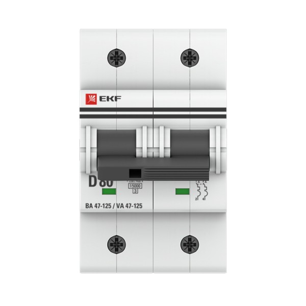 Автоматический выключатель 2P 80А (D) 15кА ВА 47-125 EKF PROxima