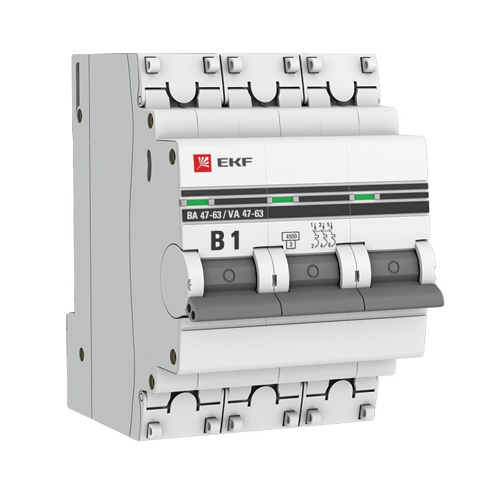 Автоматический выключатель 3P 1А (B) 4,5кА ВА 47-63 EKF PROxima
