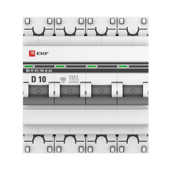 Автоматический выключатель 4P 10А (D) 4,5kA ВА 47-63 EKF PROxima