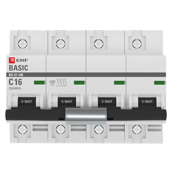 Автоматический выключатель 4P 16А (C) 10kA ВА 47-100 EKF Basic