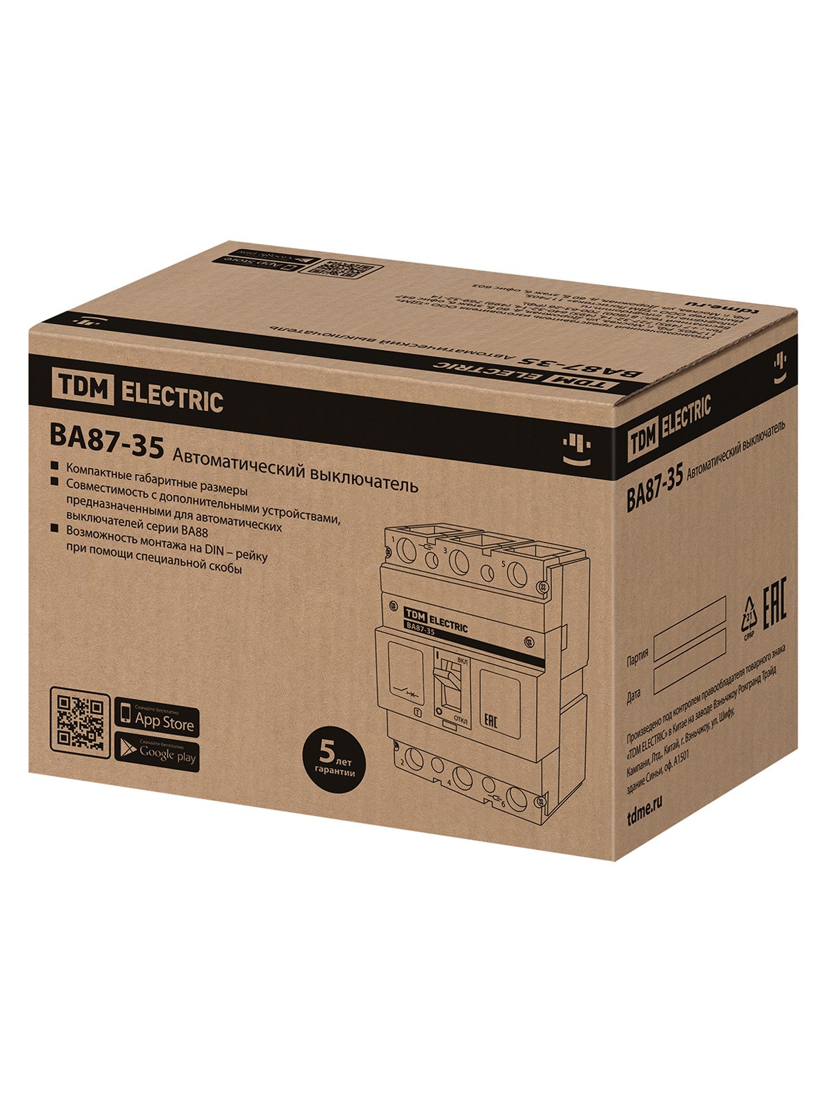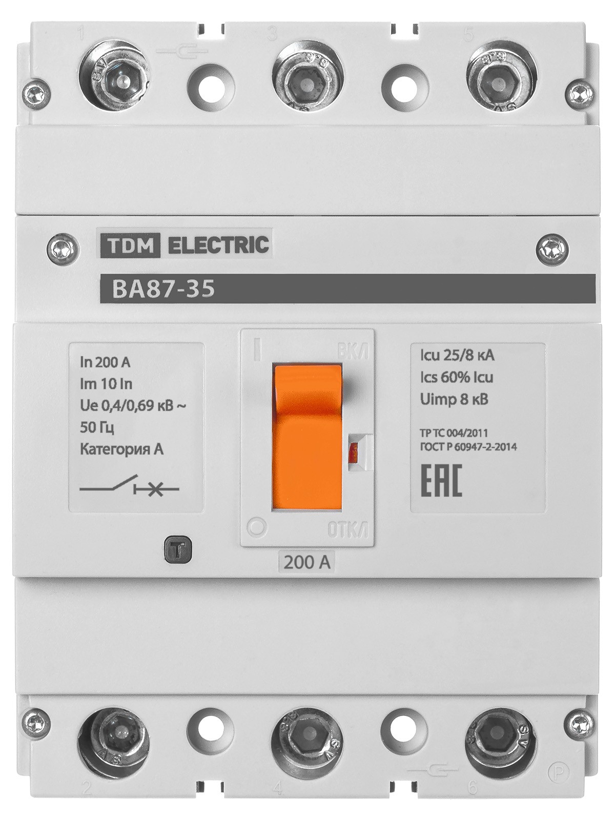 Назначение: Проведение тока в нормальном режиме. Отключение тока при коротких замыканиях, перегрузке. Оперативное включение и выключение электрических цепей. Применение: Промышленные объекты. Жилое и гражданское строительство. Электроподстанции. Преимущества: Высокое качество Совместимость с дополнительными устройствами, предназначенными для автоматических выключателей серии ВА88 Низкая цена Компактные габаритные размеры Конструкция: Позволяет использовать дополнительные устройства (АК, ДК, АК+ДК, РН, РМ, ¶ЭП-32/33, ЭП-35/37), предназначенные для авт. выключателей ВА88 При необходимости допускается установка автоматических выключателей под углом до 30% в любую сторону без изменений номинальных характеристик. Возможность монтажа на DIN – рейку при помощи специальной скобы RCS1 (ВА87-33) Позволяет самостоятельно устанавливать дополнительные аксессуары. Материалы: Пластиковые детали корпуса выполнены из стеклонаполненного полиамида. Он не гигроскопичен, устойчив к деформациям, и долговечен. Напайки на силовых контактах (подвижных и неподвижных) выполнены на основе серебра. Комплектация: Упаковка: