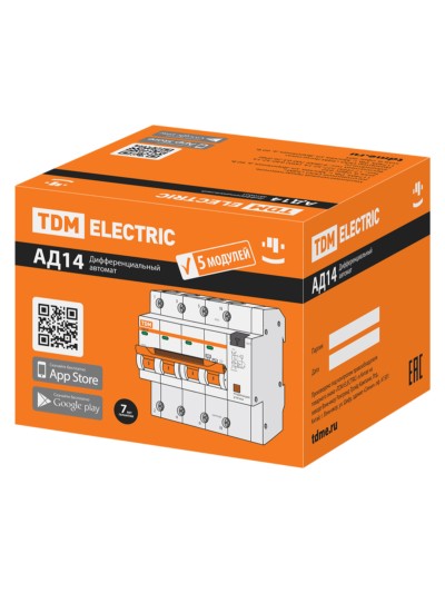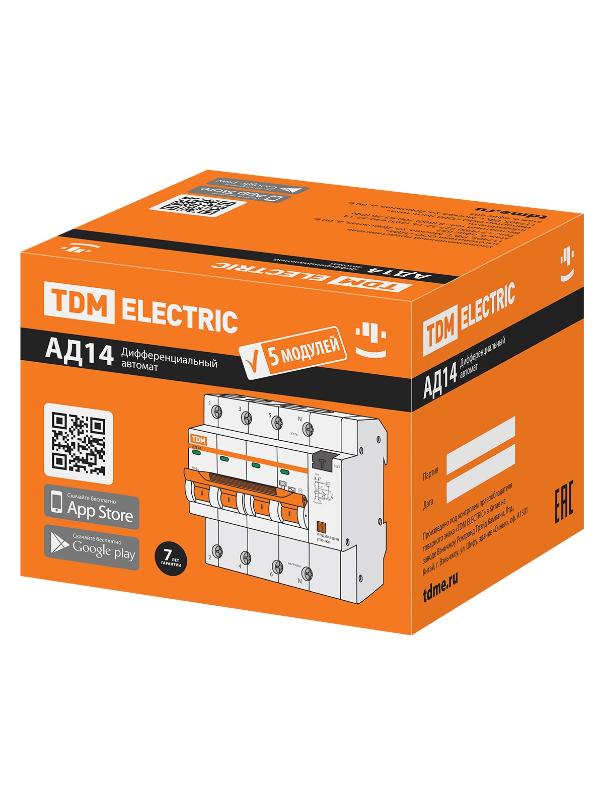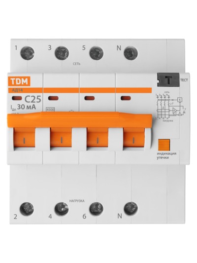 Диф. автомат АД14 4P, C25, 30 мА, 4,5 кА, тип АС, 5 мод, TDM