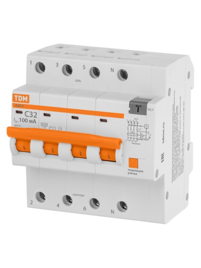 Диф. автомат АД14 4P, C32, 100 мА, 4,5 кА, тип АС, 5 мод, TDM