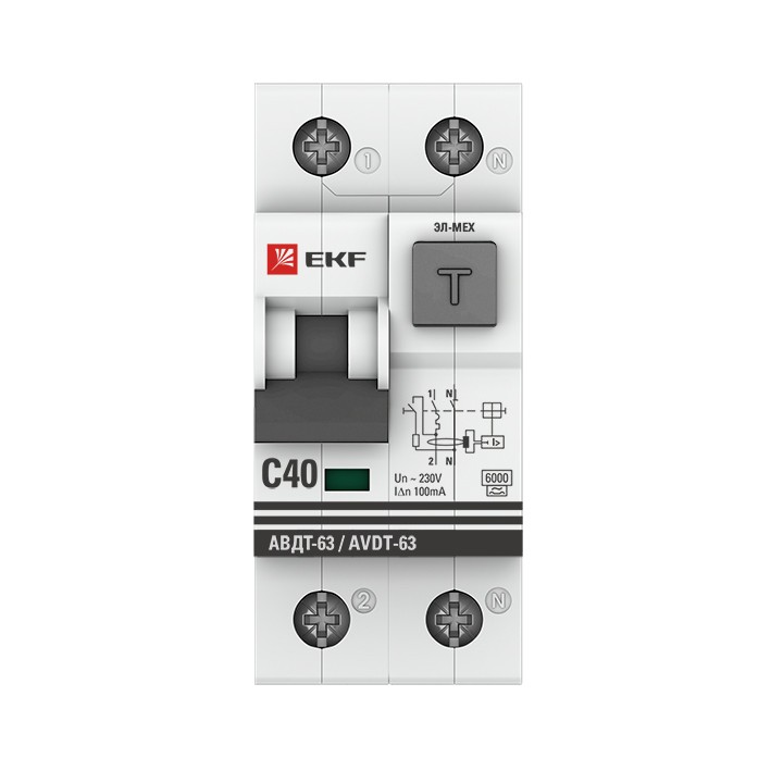 Дифференциальный автомат АВДТ-63 40А/100мА (характеристика C, эл-мех, тип А) 6кА EKF PROxima