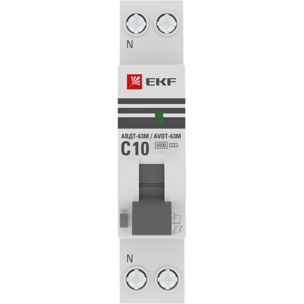 Дифференциальный автомат АВДТ-63М 10А/30мА (1мод, хар, C, электронный, тип A) 6кА EKF PROxima