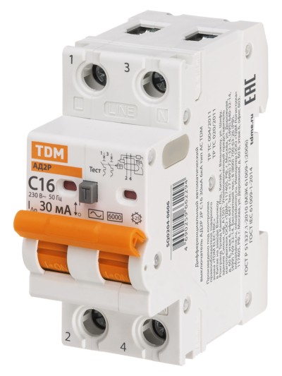 Все товары похожие по терминуВыключатель АВДТ одномодульный 63М 2P(1P+N) C16 30мА 4,5кА тип АС TDM