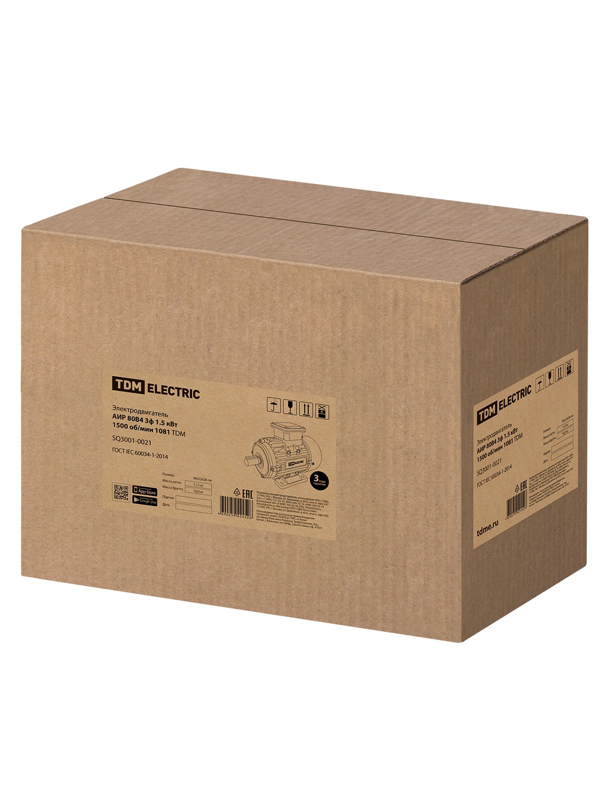 Электродвигатель АИР 80B4 3ф 1.5кВт 1500об/мин 1081 TDM