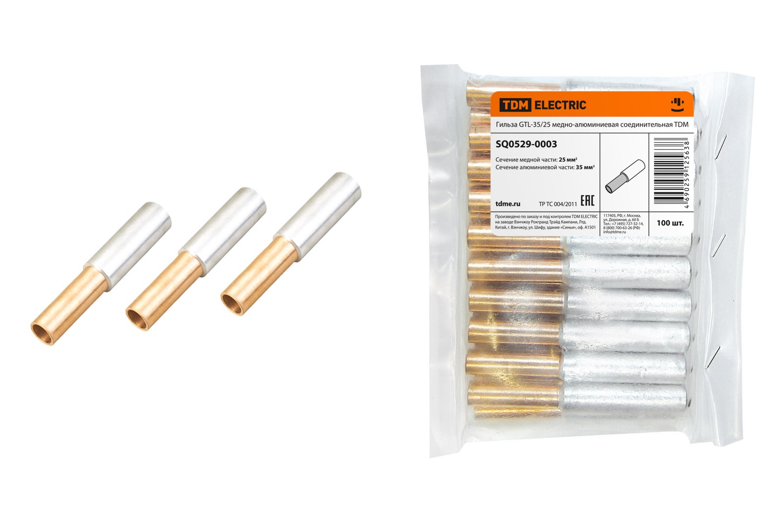 Гильза GTL-35/25 медно-алюминиевая соединительная TDM