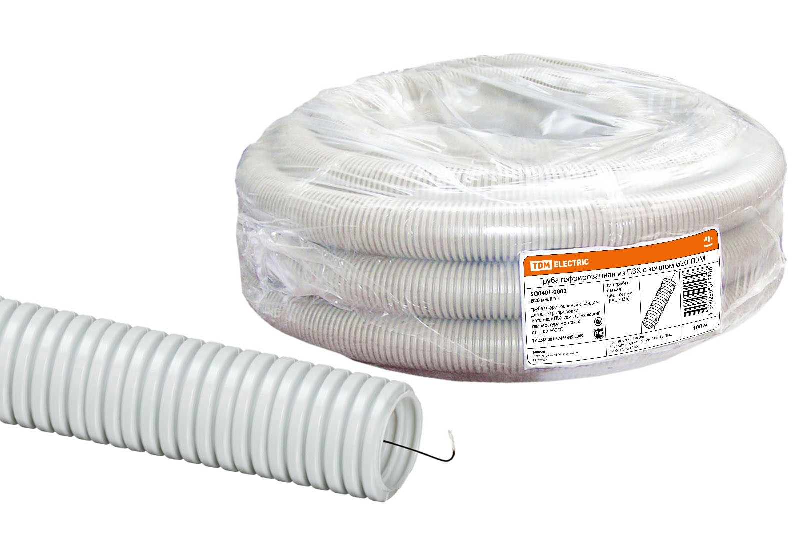 Гофротруба ПВХ для кабеля d20 с протяжкой 100м лёгкая Народная TDM SQ0401-0302