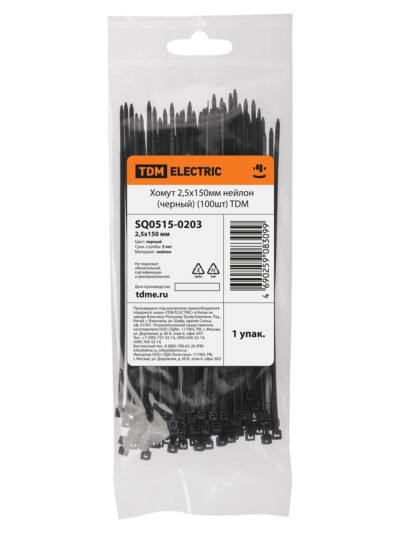 Хомут 2,5х150мм нейлон (черный) (100шт) TDM