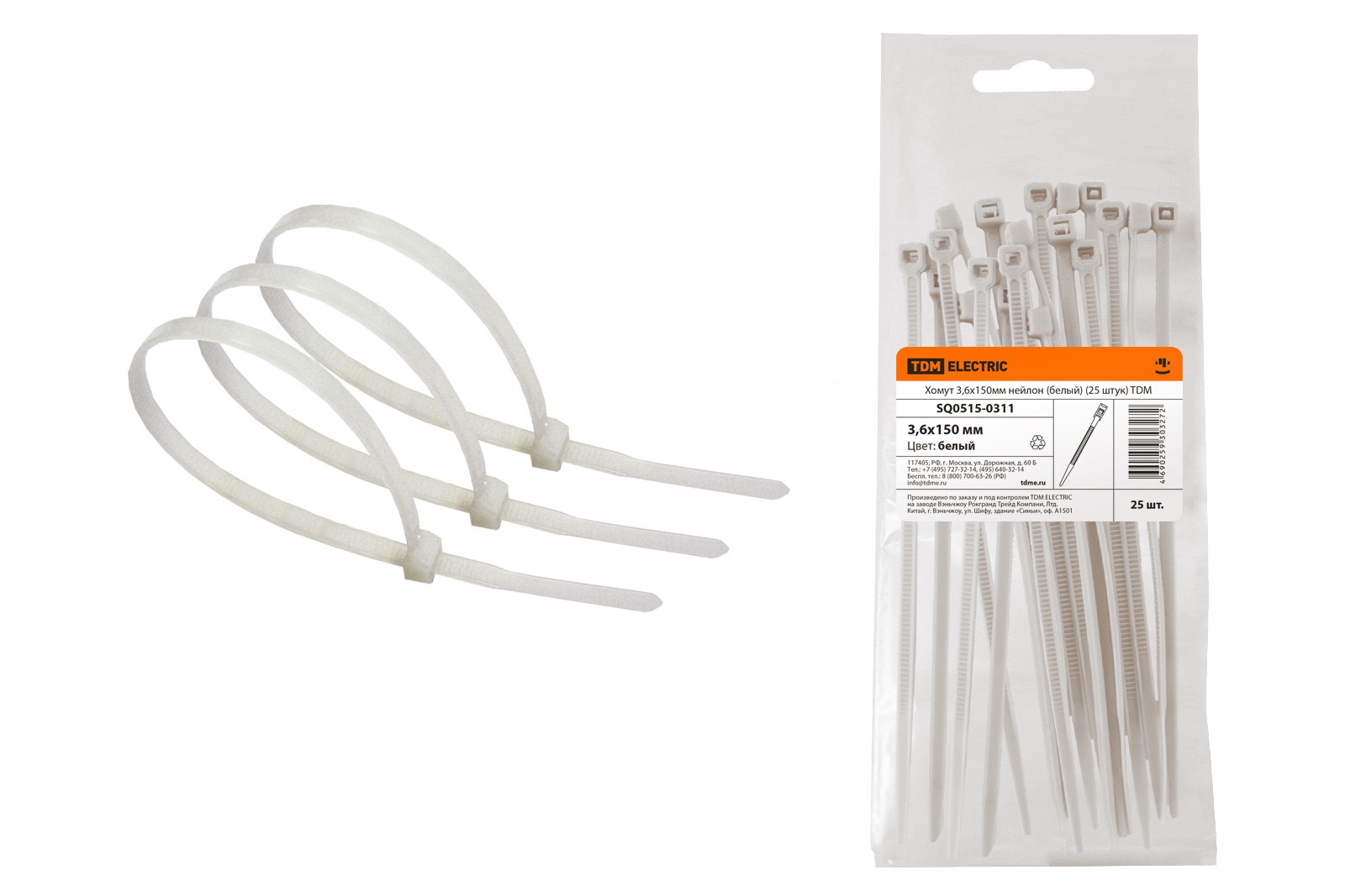 Хомут 3,6х150мм нейлон (белый) (25 штук) TDM