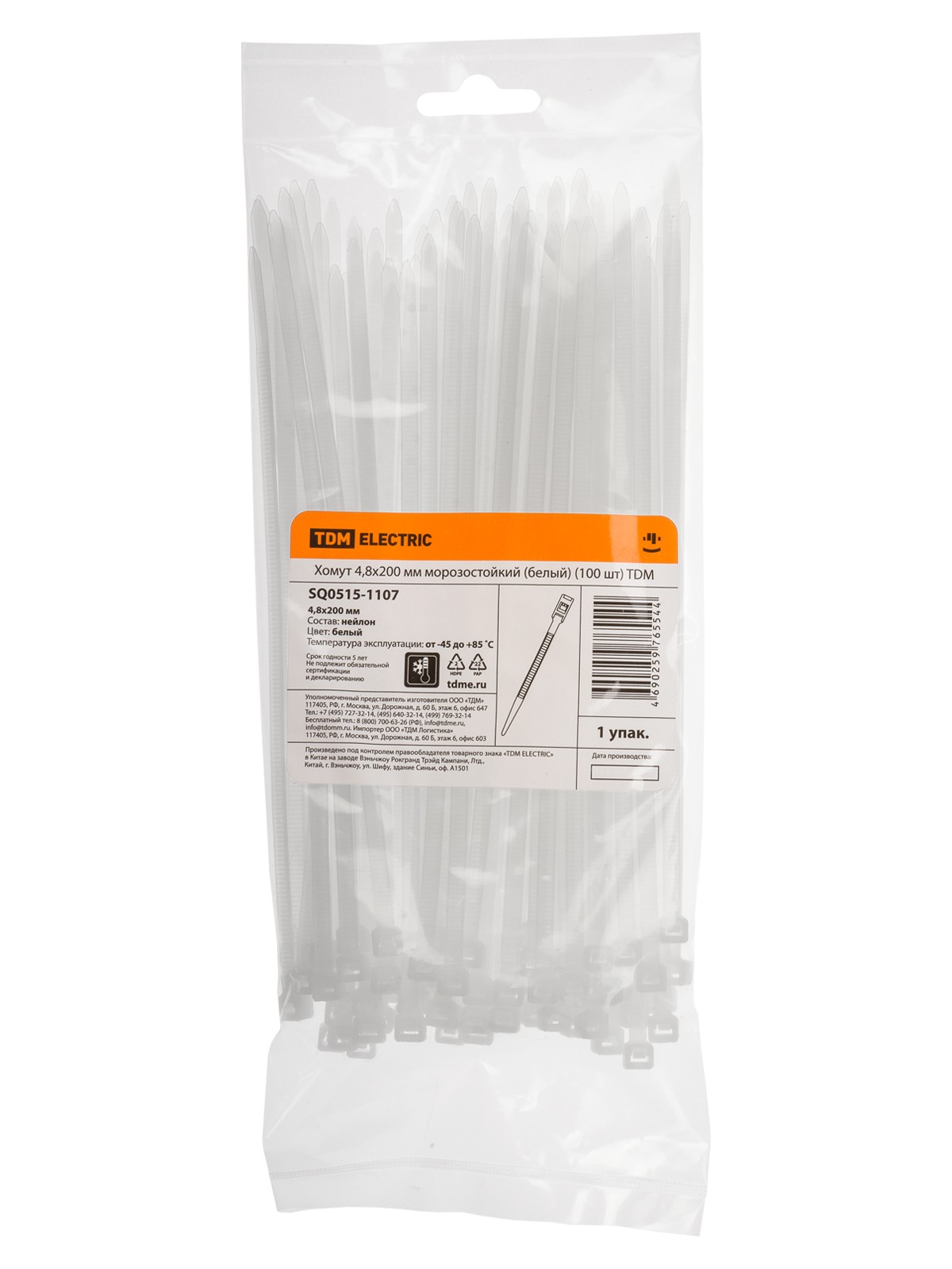 Хомут 4,8х200 мм морозостойкий (белый) (100 шт) TDM