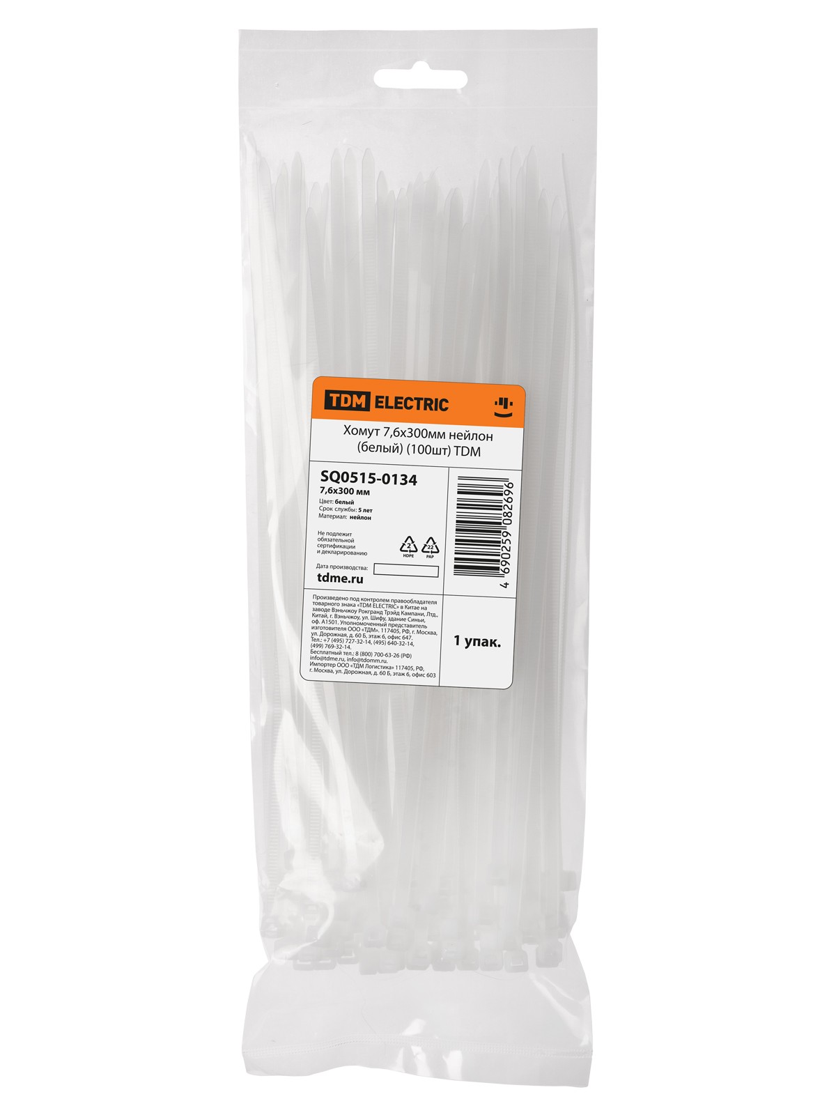 Хомут 7,6х300мм нейлон (белый) (100шт) TDM