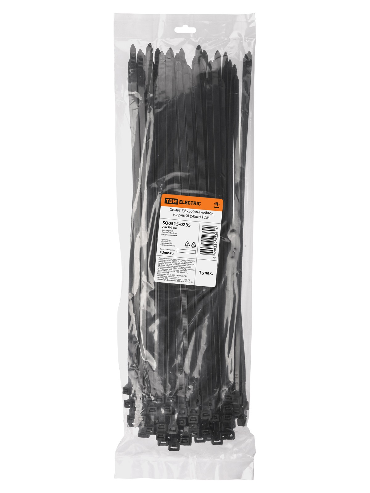 Хомут 7,6х300мм нейлон (черный) (50шт) TDM