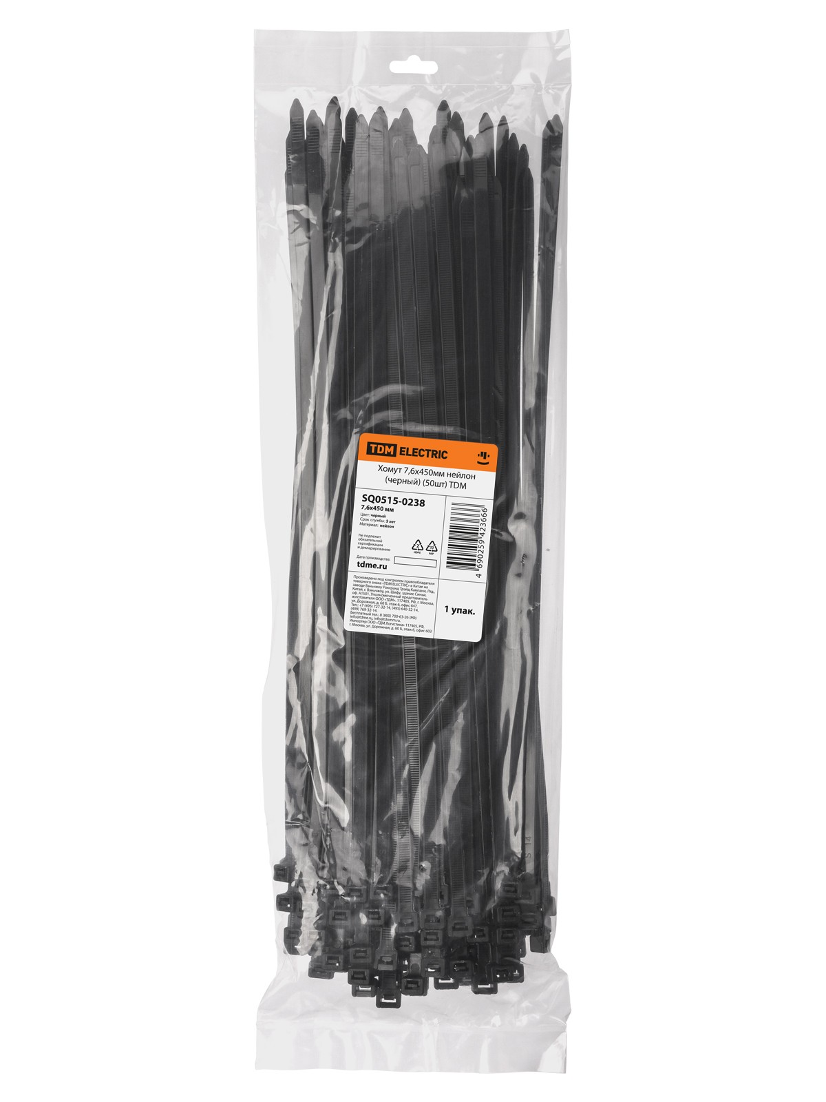 Хомут 7,6х450мм нейлон (черный) (50шт) TDM