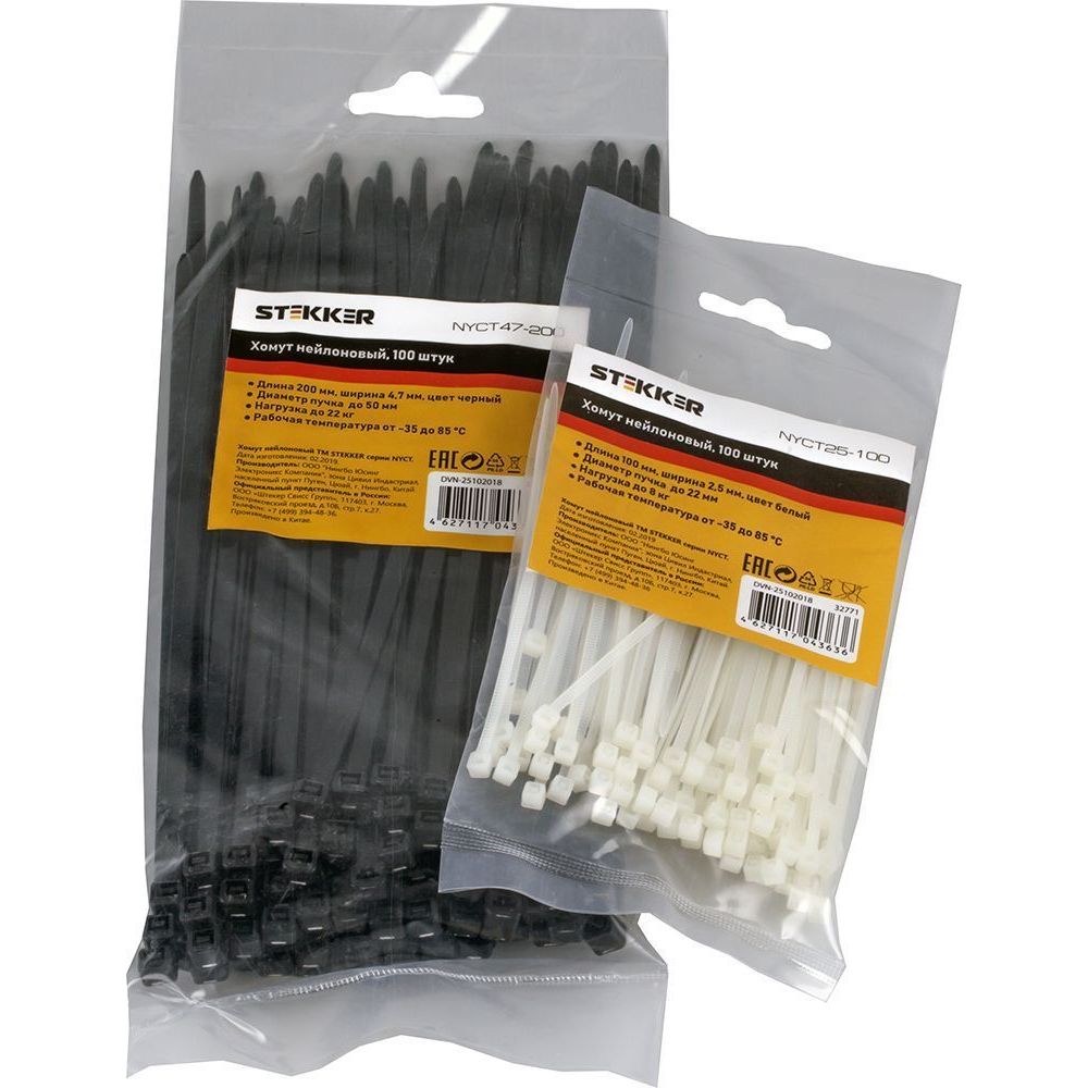 Все товары похожие и смежныеХомут нейлоновый Stekker NYCT47-200 4,7х20мм d пучка max 50мм нагрузка 22кг черный 100 шт/уп