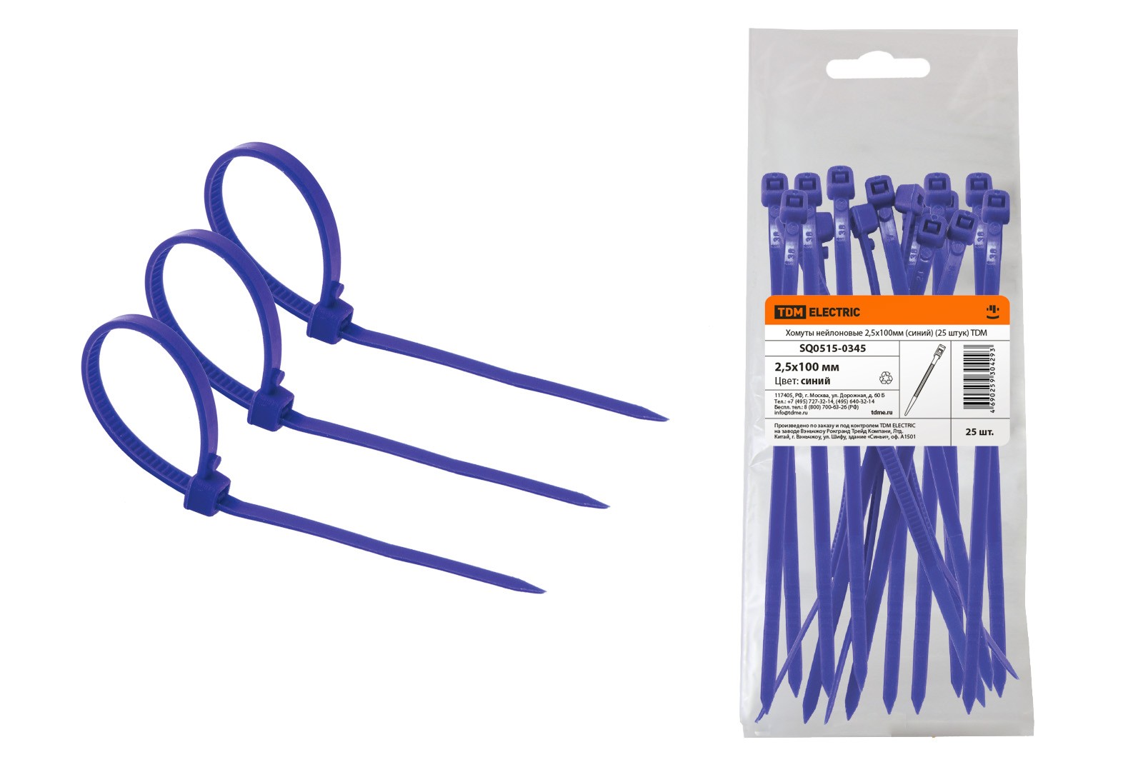 Хомуты нейлоновые 4,8х300мм (синий) (25 штук) TDM