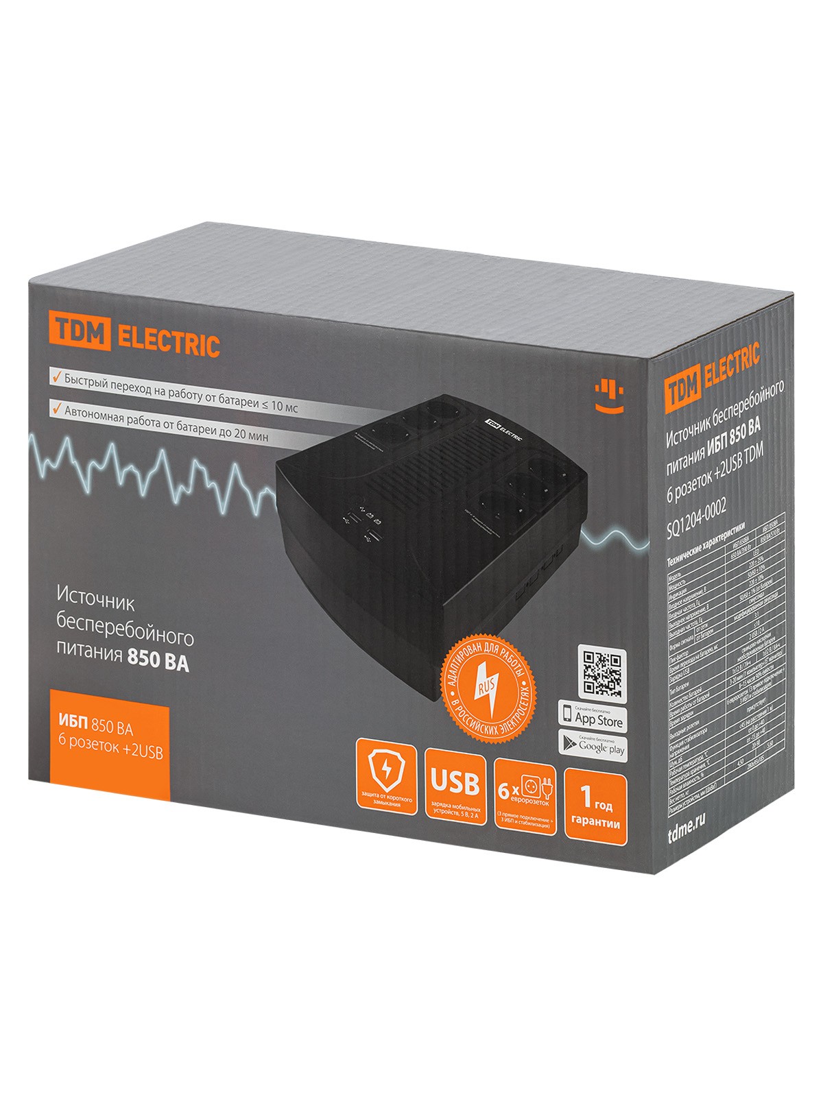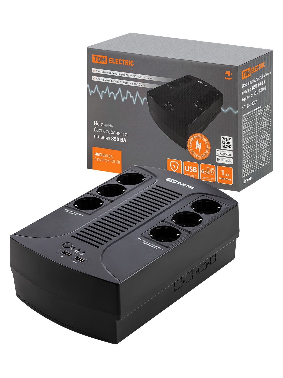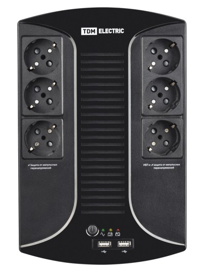 Источник бесперебойного питания ИБП 850 ВА 6 розеток +2USB TDM