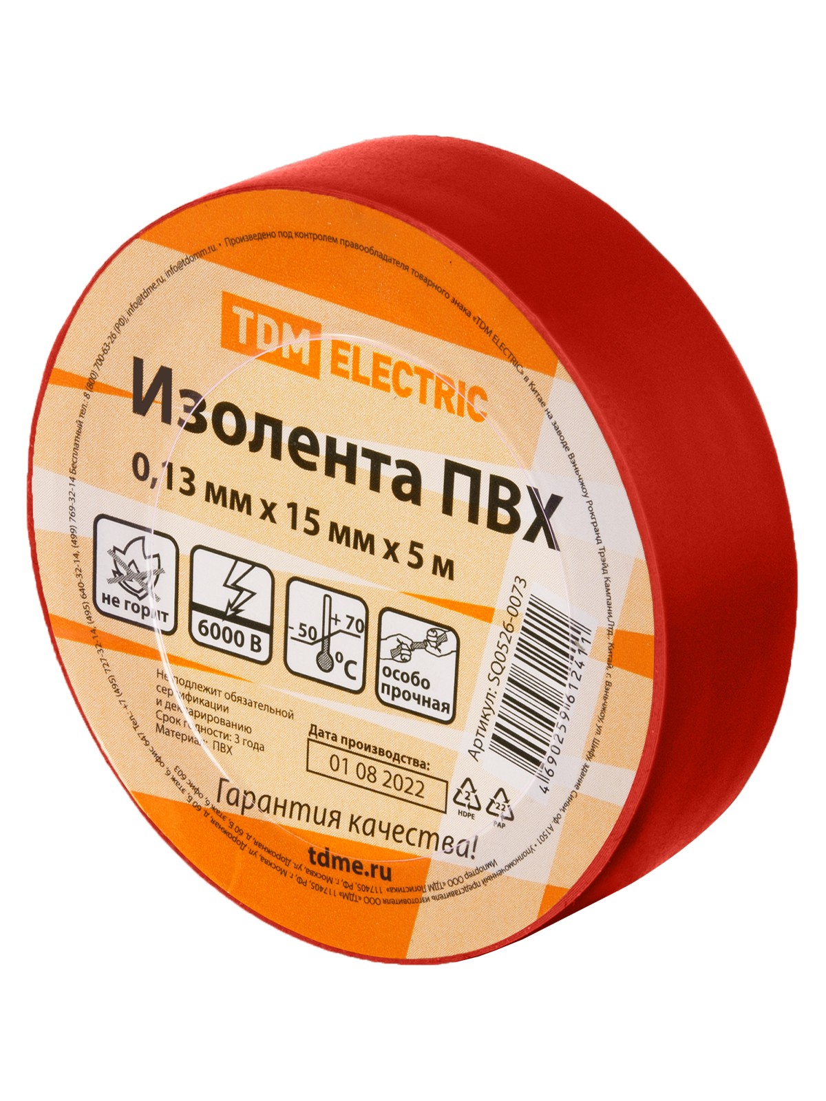 Изолента ПВХ 0,13х15мм Красная 5м TDM