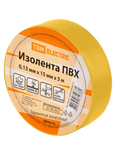 Изолента ПВХ 0,13х15мм Желтая 5м TDM