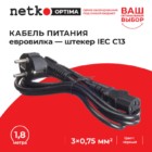 Кабель питания (евровилка – штекер IEC C13) 3*0,5мм2 1,8м черный Netko Optima