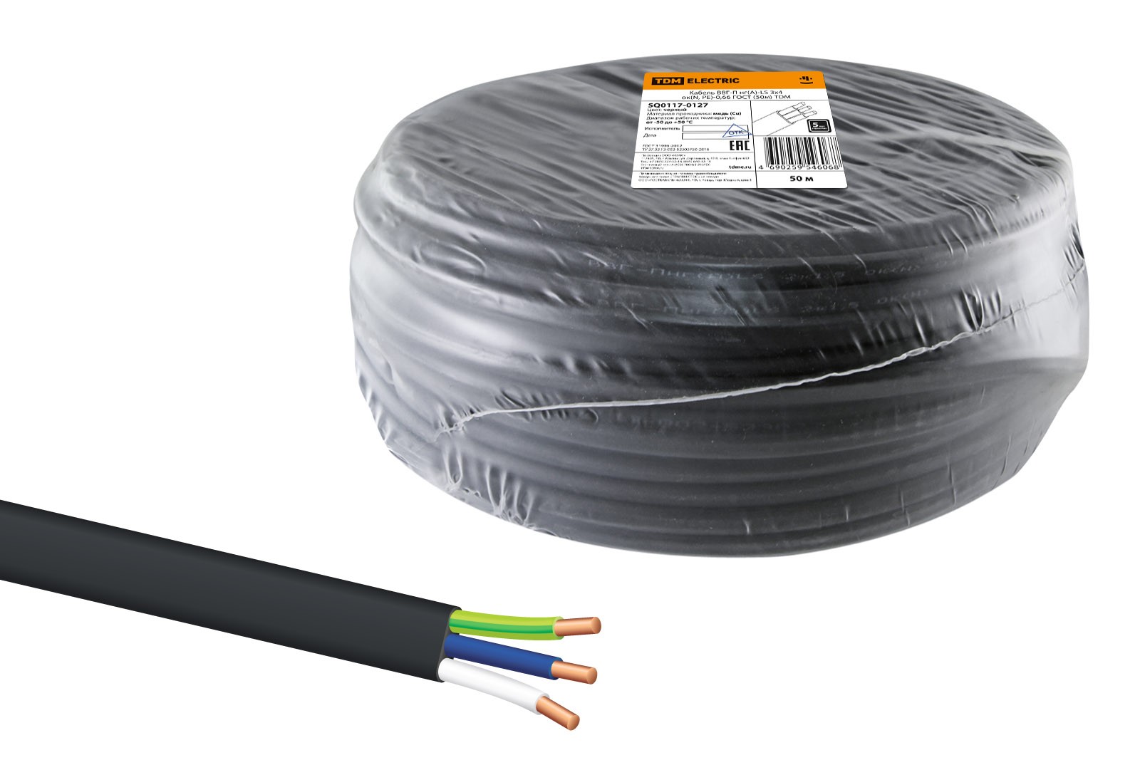 Кабель ВВГ-Пнг(А)-LSLTx 3х4 ок(N, PE)-0,66 ГОСТ (100м) TDM