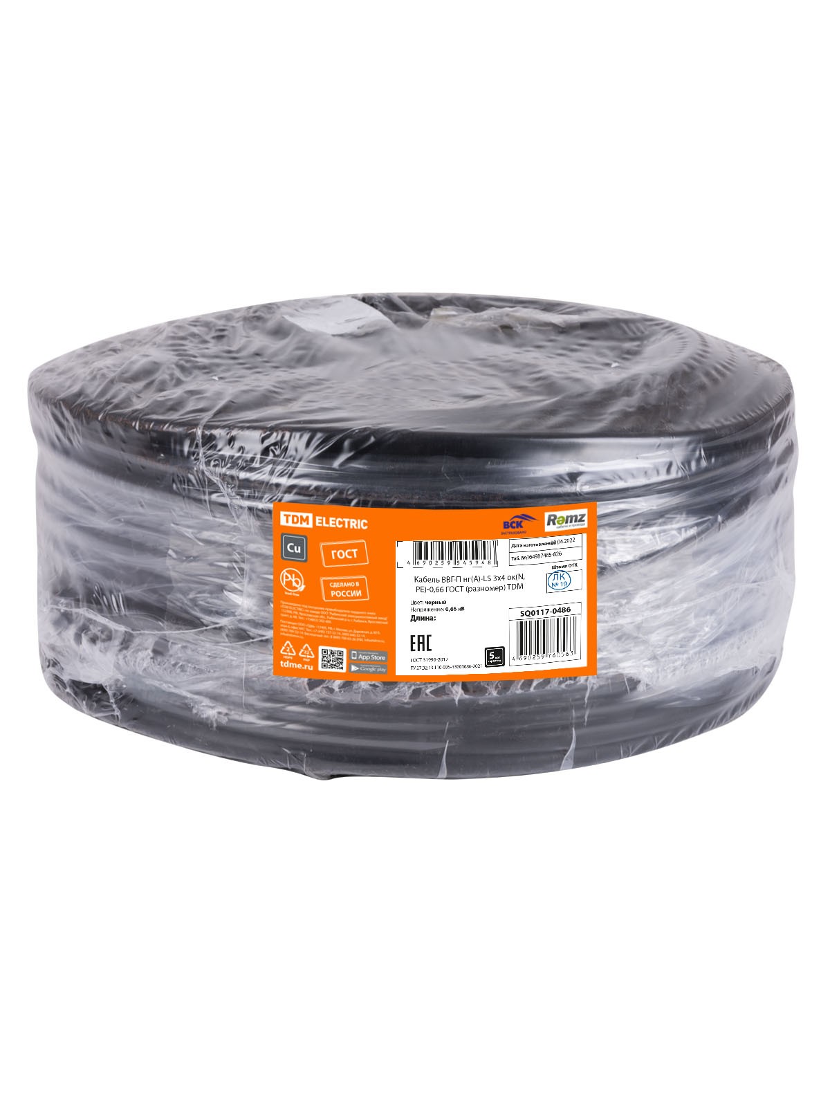 Кабель ВВГ-П нг(А)-LS 3х4 ок(N, PE)-0,66 ГОСТ (разномер) TDM