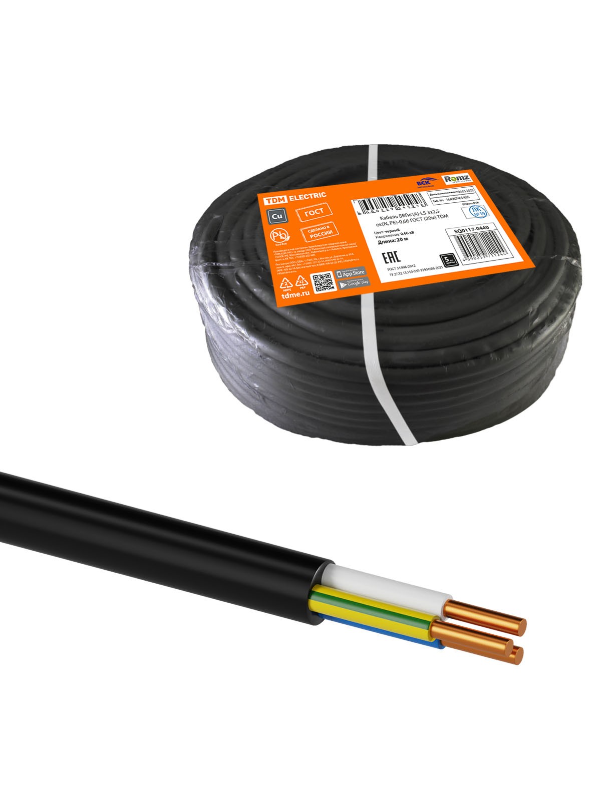 Провод ПВС 3х2,5 ГОСТ (20м), черный TDM