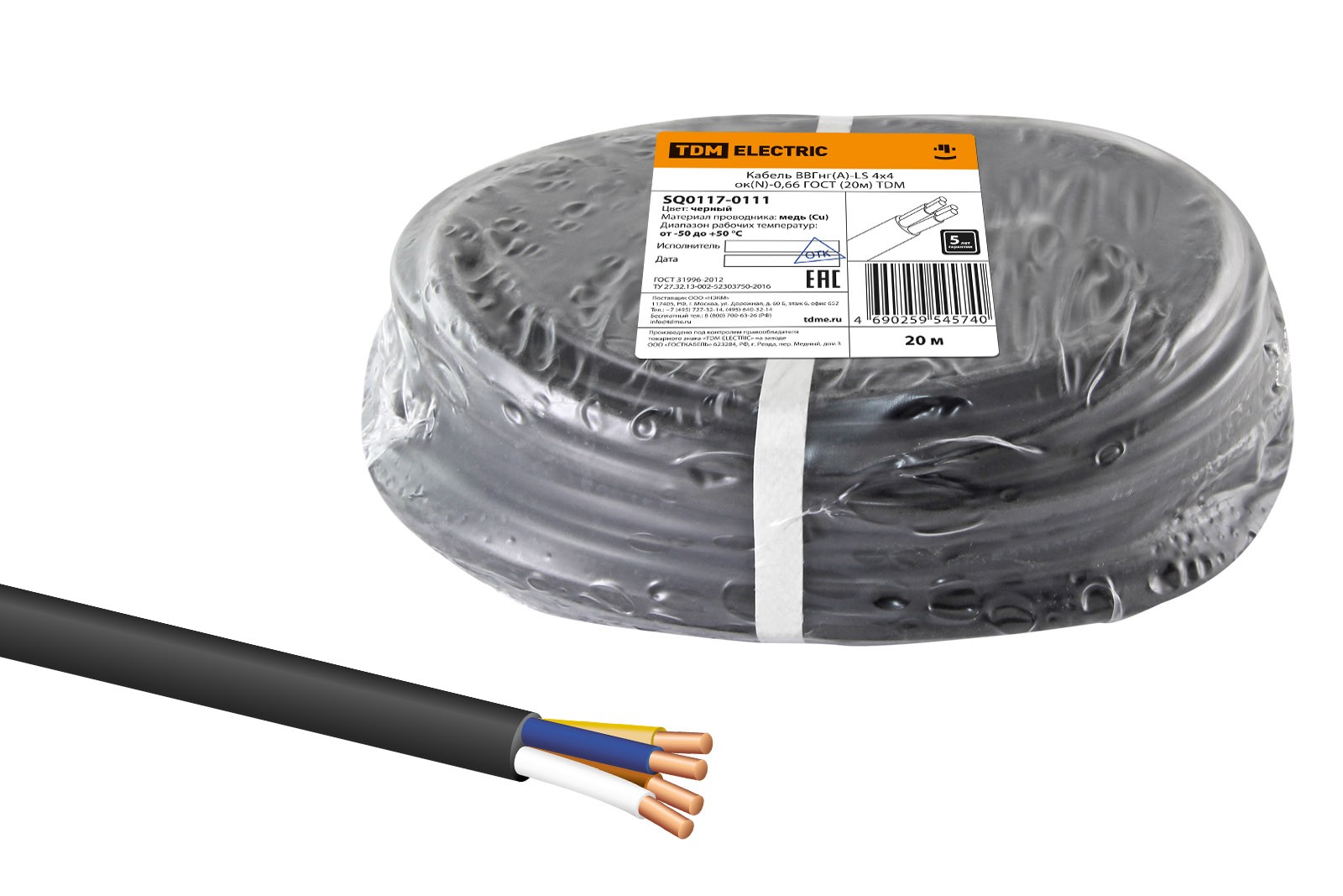 Кабель ВВГнг(А)-LS 4х4 ок(N)-0,66 ГОСТ (20м) TDM