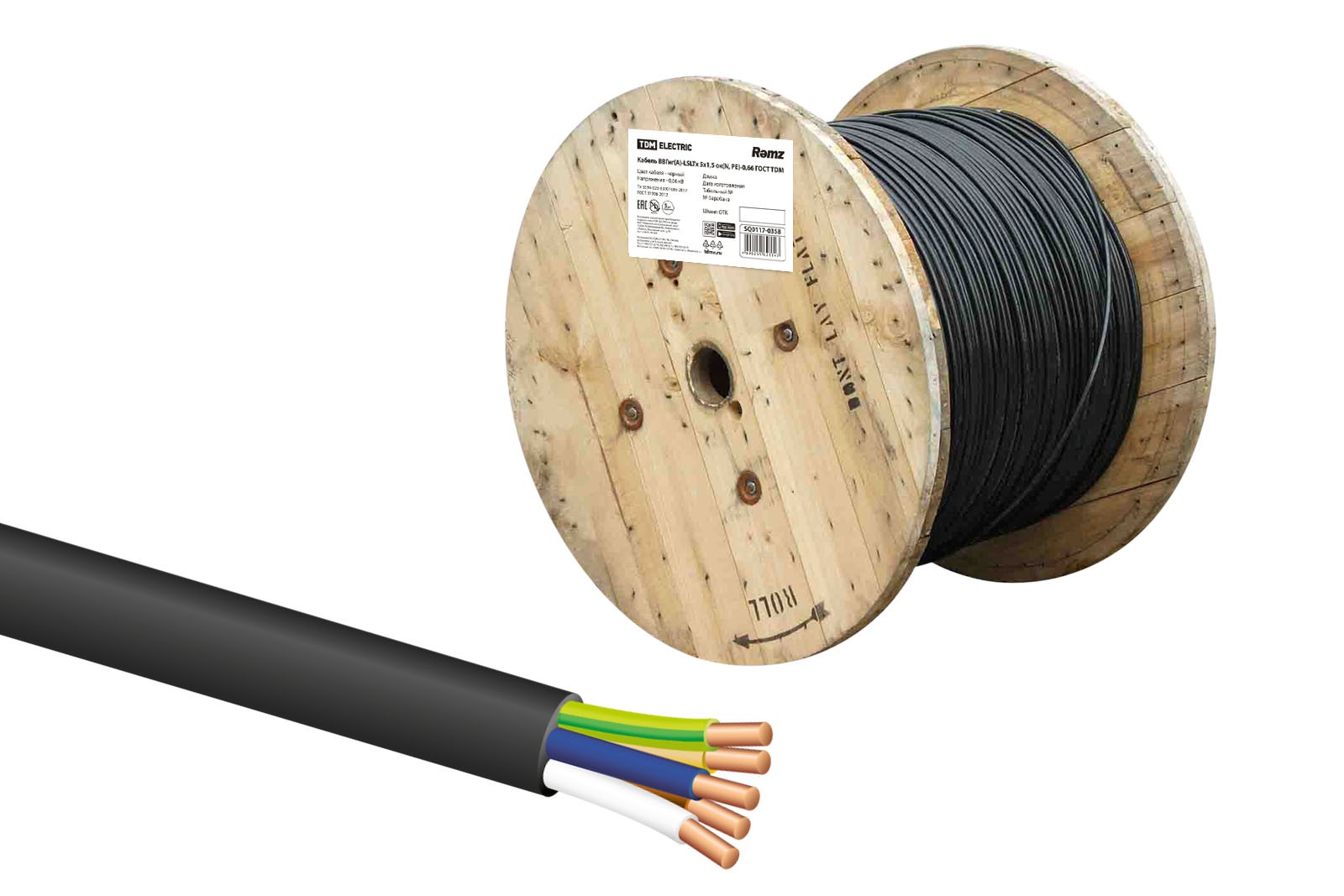 Кабель ВВГнг(А)-LSLTx 5х1,5 ок(N, PE)-0,66 ГОСТ TDM