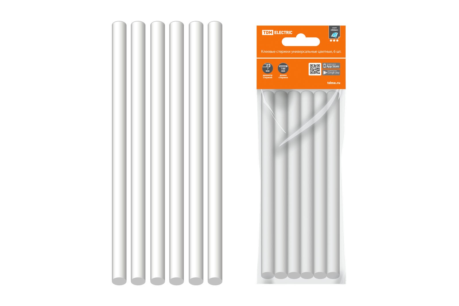 Клеевые стержни универсальные белые, 11 мм x 100 мм, 6 шт, “Алмаз” TDM
