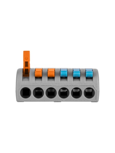Назначение: Монтаж проводников в распределительной коробке, подключение светильников и другого оборудования. Применение: Для присоединения,разветвления одножильных проводников сечением от 0,1 мм² до 2,5 мм² и многожильных от 0,1 мм² до 4 мм² Преимущества: Имеют тестовое отверстие для возможности измерения электрических параметров без разбора и нарушения изоляции соединения. Благодаря утопленному рычажку исключено случайное отключение при монтаже в тесном пространстве. Обеспечивают безопасность и порядок в распределительной коробке. Быстрый монтаж и демонтаж проводников без дополнительных инструментов Конструкция: Материалы: Никелированная латунь Корпус - самозатухающий ПВХ Комплектация: Упаковка: