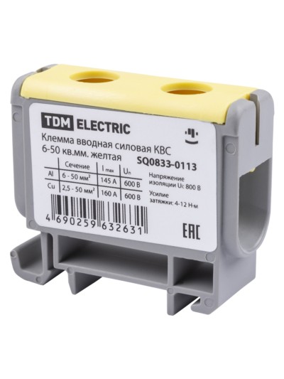 Клемма вводная силовая КВС 6-50 кв.мм. желтая TDM