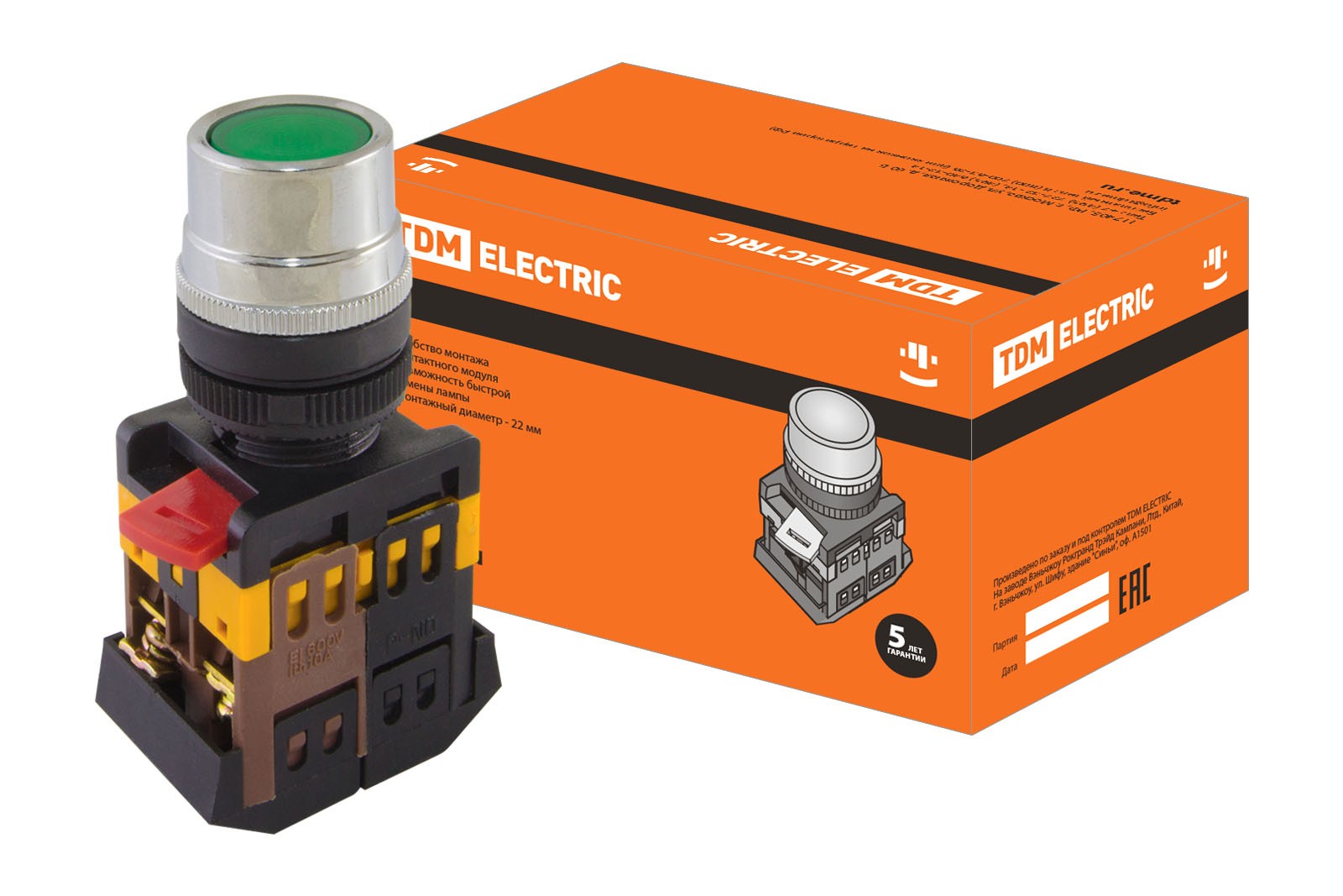 Кнопка ABLF-22 зеленый d22мм неон/230В 1з+1р TDM