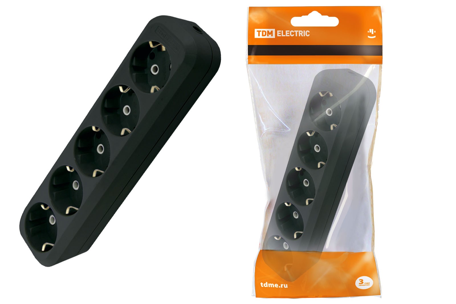 Колодка розеточная 5 гнезд 2П+3 16А 250В черная TDM