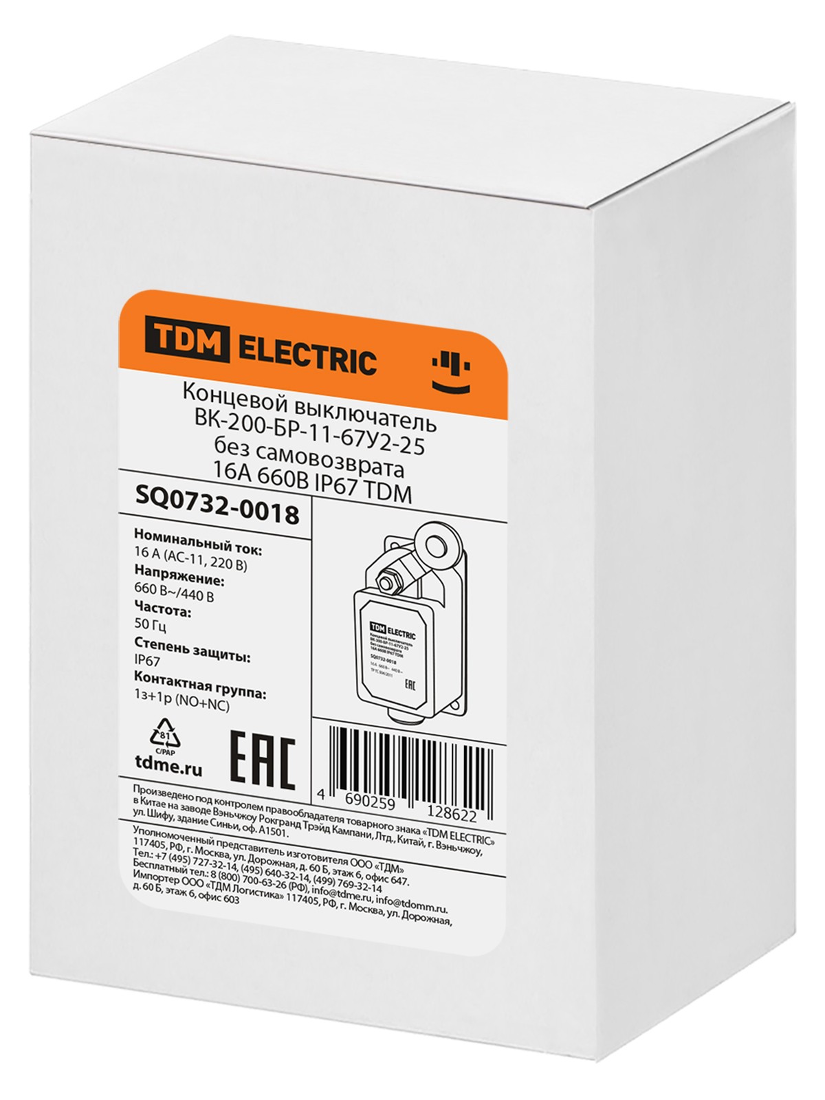 Концевой выключатель ВК-200-БР-11-67У2-2X с самовозвратом 16А 660В IP67 TDM