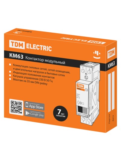 Назначение: Используются для автоматизации и управления различных технологических процессов, в том числе в системах освещения, кондиционирования, вентиляции и т. д. Применение: Автоматика инженерного оборудования: зданий, насосов, систем вентиляции, отопления, освещения и т. д. Преимущества: Защелка на DIN-рейку с фиксацией упрощает монтаж и демонтаж аппарата. Совместимость размеров позволяет установить контактор в стандартный щиток с любыми аппаратами модульной серии. На лицевой панели реализован механический индикатор положения контактов (включено/отключено), Конструкция: Это повышает их износоустойчивость, увеличивает срок службы, уменьшает переходное сопротивление и тепловые потери. Мостиковые контакты обеспечивают высокие электроизоляционные свойства и хорошее гашение дуги при коммутации. Материалы: Корпус и детали аппарата выполнены из пластика, не поддерживающего горение. Комплектация: Упаковка: КМ63/2-20 по 12 шт. КМ63/2-25 по 12 шт. КМ63/2-32 по 6 шт. КМ63/2-40 по 6 шт. КМ63/2-63 по 6 шт. КМ63/4-20 по 6 шт. КМ63/4-25 по 6 шт. КМ63/4-32 по 4 шт. КМ63/4-40 по 4 шт. КМ63/4-63 по 4 шт. Руководство по эксплуатации - 1 шт. на групповую упаковку Паспорт - 1 шт. на групповую упаковку