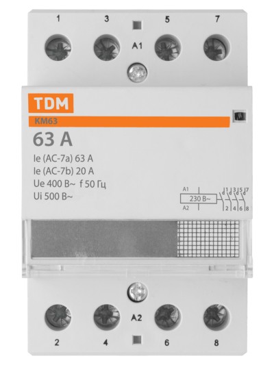 Назначение: Используются для автоматизации и управления различных технологических процессов, в том числе в системах освещения, кондиционирования, вентиляции и т. д. Применение: Автоматика инженерного оборудования: зданий, насосов, систем вентиляции, отопления, освещения и т. д. Преимущества: На лицевой панели реализован механический индикатор положения контактов (включено/отключено), Защелка на DIN-рейку с фиксацией упрощает монтаж и демонтаж аппарата. Совместимость размеров позволяет установить контактор в стандартный щиток с любыми аппаратами модульной серии. Конструкция: Мостиковые контакты обеспечивают высокие электроизоляционные свойства и хорошее гашение дуги при коммутации. Это повышает их износоустойчивость, увеличивает срок службы, уменьшает переходное сопротивление и тепловые потери. Материалы: Корпус и детали аппарата выполнены из пластика, не поддерживающего горение. Комплектация: Упаковка: Руководство по эксплуатации - 1 шт. на групповую упаковку Паспорт - 1 шт. на групповую упаковку КМ63/2-20 по 12 шт. КМ63/2-25 по 12 шт. КМ63/2-32 по 6 шт. КМ63/2-40 по 6 шт. КМ63/2-63 по 6 шт. КМ63/4-20 по 6 шт. КМ63/4-25 по 6 шт. КМ63/4-32 по 4 шт. КМ63/4-40 по 4 шт. КМ63/4-63 по 4 шт.