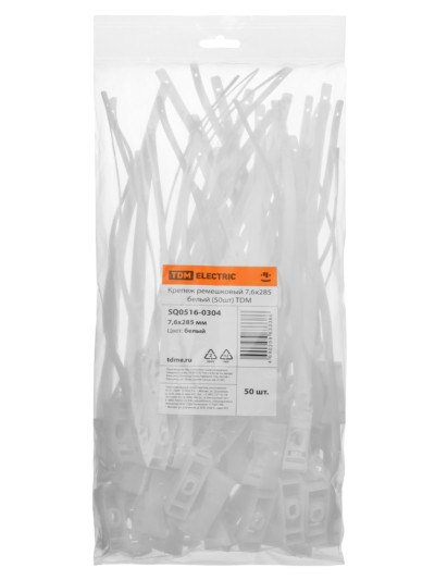 Крепеж ремешковый 7,6х285 белый (50шт) TDM
