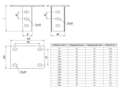 Кронштейн TDM К1П-0,3-0,35 на опору с 1 хомутом (в комплекте) (1/6)