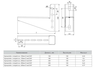 Кронштейн с опорой основание 150мм (2мм) HDZ EKF