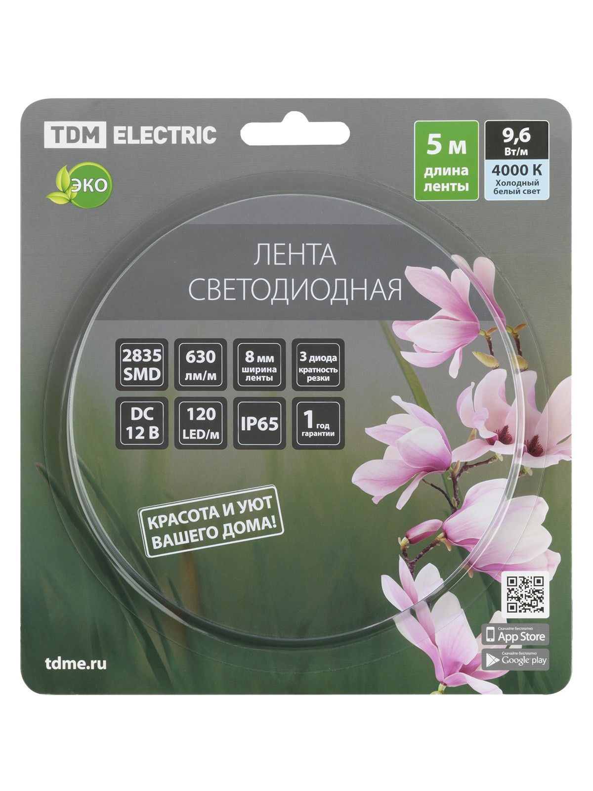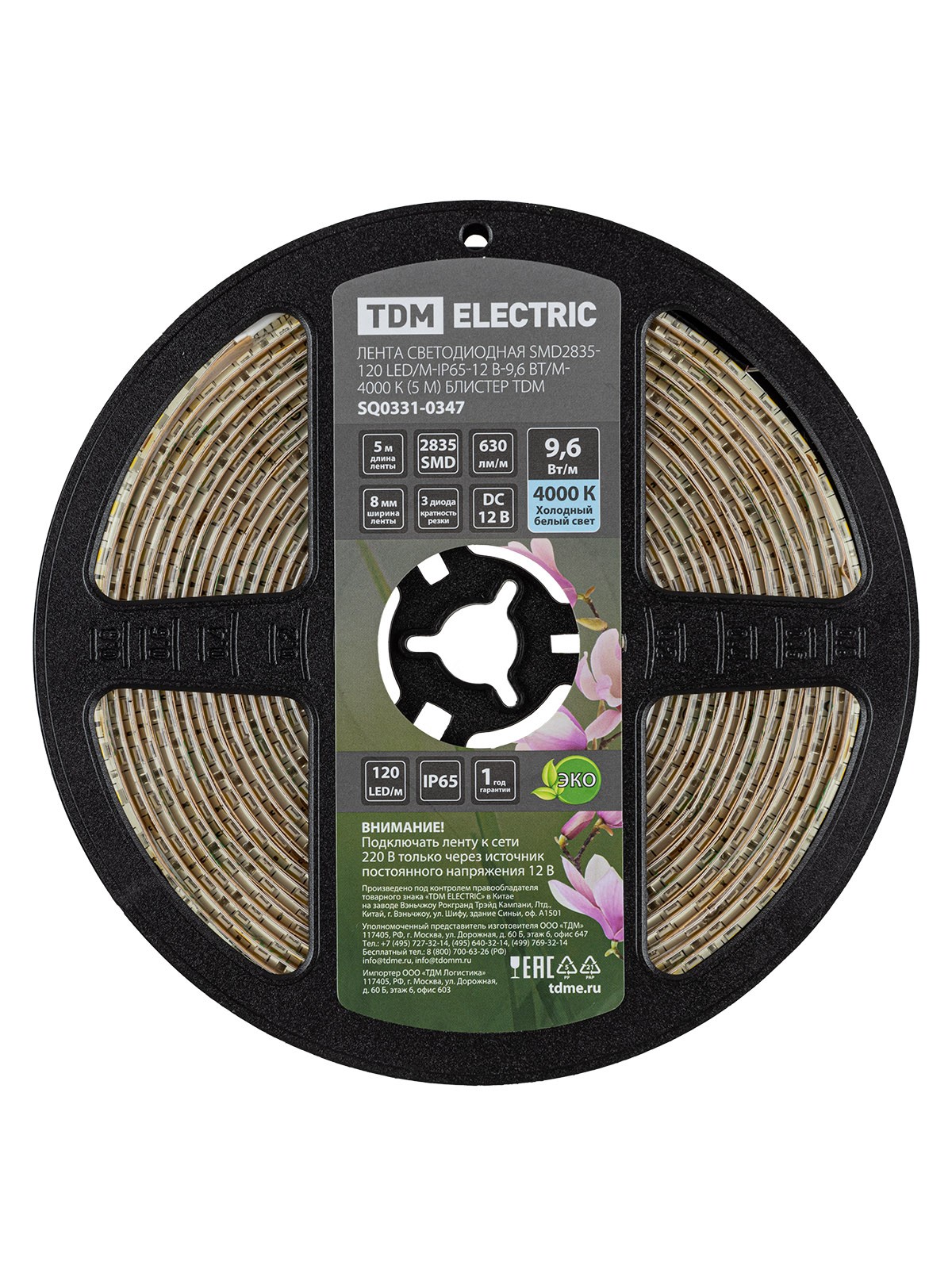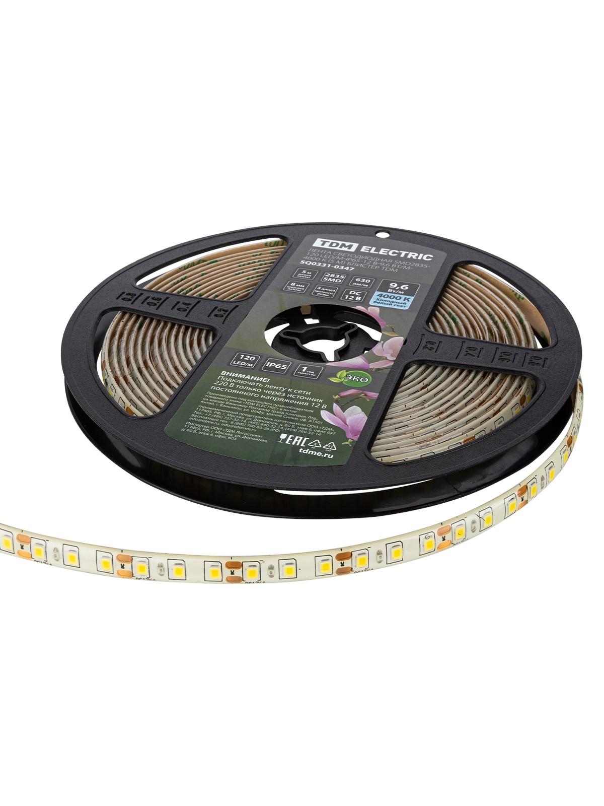 Лента светодиодная SMD2835-120 LED/м-IP65-12 В-9,6 Вт/м-4000 К (5 м) блистер TDM