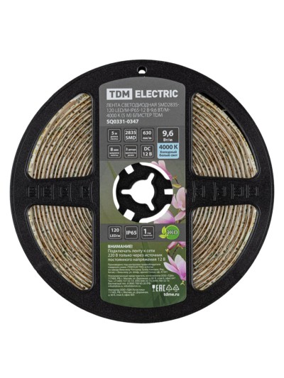 Назначение: Применение: Для декоративной и функциональной подсветки. Подсветка витрин с ювелирными изделиями и торговых экспозиций. Контурная подсветка лестниц. Освещение потолочных конструкций, ниш, интерьерных сооружений. Декоративная подсветка мебели, торцевая подсветка стеклянных полок, баров, витражей и витрин. Освещение холодильных и морозильных установок. Контурная подсветка рекламных букв и коробов. Тюнинг автомобилей. Преимущества: Безопасность эксплуатации. Светодиодная лента работает от низкого напряжения 12 В, что абсолютно безопасно для человека. Безопасно для зрения – отсутствие пульсаций светового потока. Экологически безопасно – не содержит ртути, не требует специальной утилизации. Удобство хранения. Светодиодная лента поставляется в фольгированных ZIP-пакетах, что предоставляет возможность длительного хранения отрезков ленты, защищая их от высыхания клеевого слоя, статического электричества, влажности и пыли. Возможность использования при низких температурах. Для обеспечения степени защиты IP54 в герметичной ленте используется полиуретан – материал, который не теряет эластичности при низких температурах (до -40 ˚С). Простота монтажа. Ленту можно резать кратно 3 светодиодам – для удобства на лицевой стороне ленты места отреза обозначены символом «Ножницы». На оборотной стороне ленты нанесен клеевой слой производства «3М» – мирового лидера в производстве клеевых материалов. Долгий срок службы. Применение качественных светодиодов, а также грамотный подбор резисторов гарантируют долгий срок службы (50 000 часов) и снижение светового потока не более чем 2% на каждые 1000 часов работы. Гарантия качества. Каждый отрезок светодиодной ленты промаркирован знаком “TDM”, что гарантирует защиту от подделок. На светодиодную ленту предоставляется гарантия 2 года. Конструкция: Материалы: Каждый отрезок 0,5 м промаркирован логотипом TDM ELECTRIC. Клейкая лента 3М с высокими адгезивными свойствами. Гибкая медная плата. Материал заливки (IP65) – полиуретан. Световой поток светодиодного чипа SMD2835 5–6 лм, SMD5050 11–13 лм. Комплектация: Упаковка: