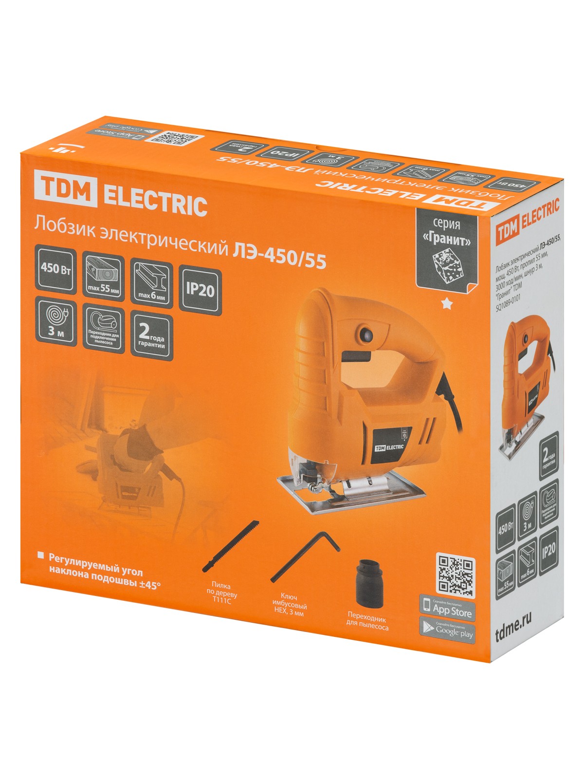 Лобзик электрический ЛЭ-450/55, мощ. 450 Вт, пропил 55 мм, 3000 ход/мин, шнур 3 м, “Гранит” ТDM