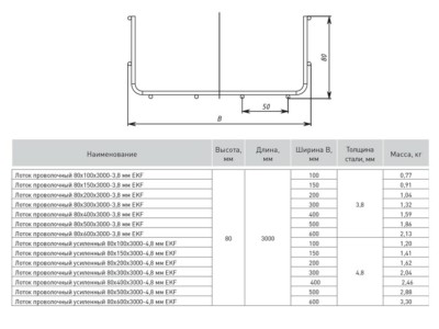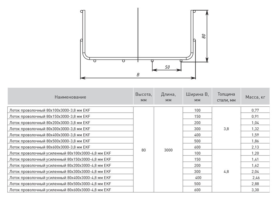 Лоток проволочный 80х600х3000-3,8 мм INOX EKF